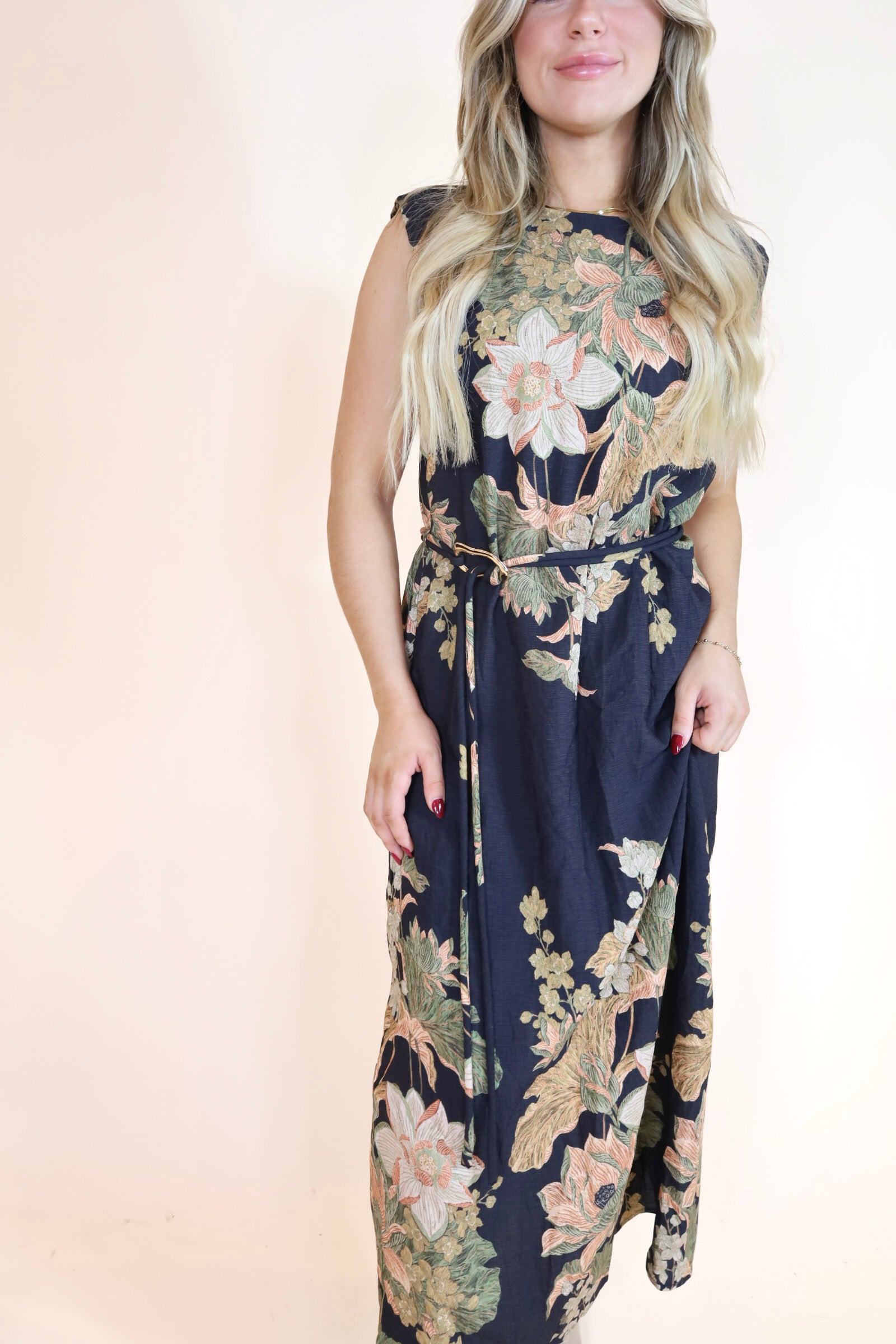 Floral Print Belted Midi Dress