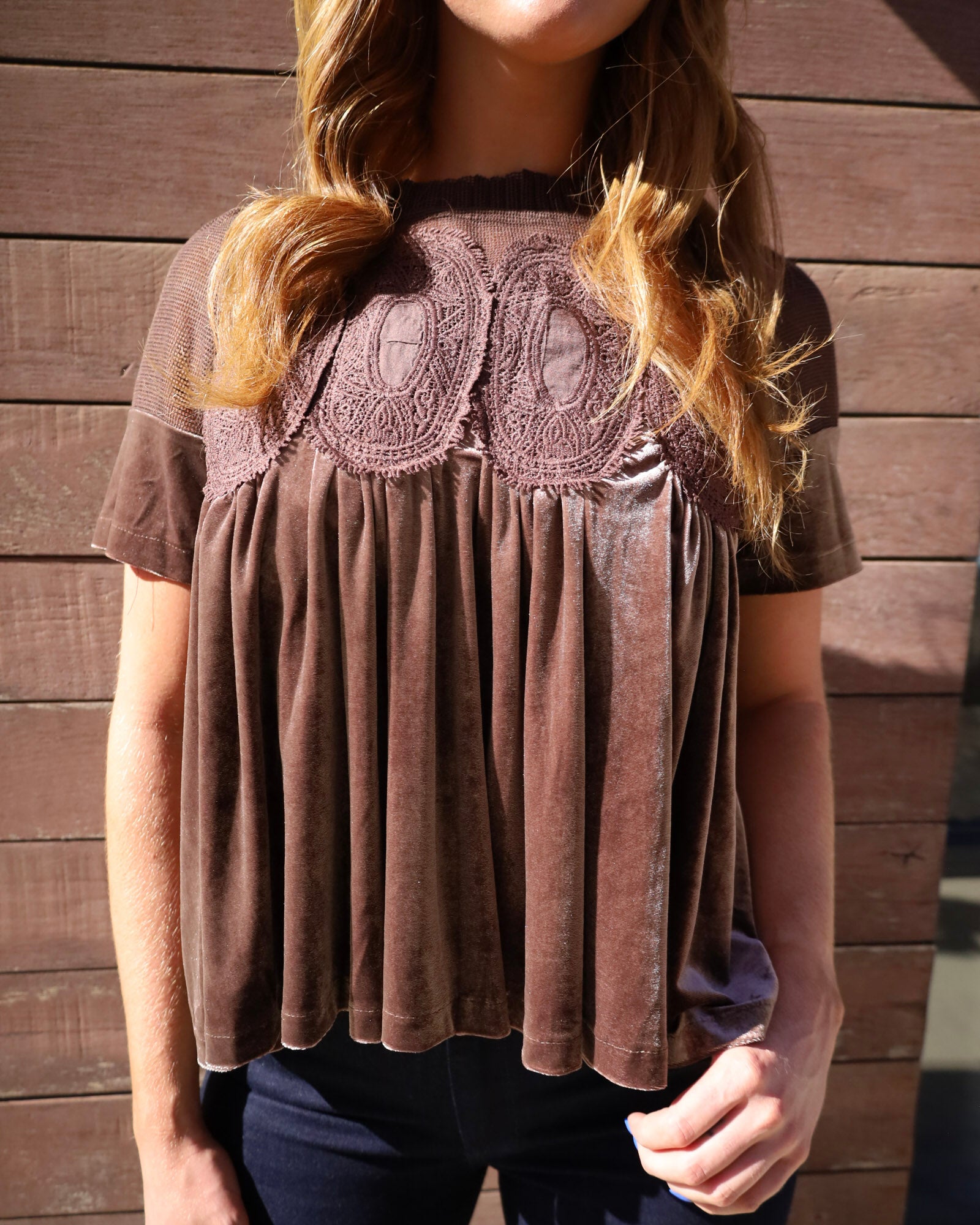 Sink into cozy luxury with this velvet babydoll top, where soft fabric meets delicate lace detailing for an effortlessly chic look. Perfect for holiday gatherings or lazy nights in, the relaxed fit drapes beautifully on all body types. Our model rocks a size medium, showing just how flattering this piece truly is. Slip it on and feel the difference quality velvet makes—it's the kind of top that makes you want to stay wrapped up all season long.