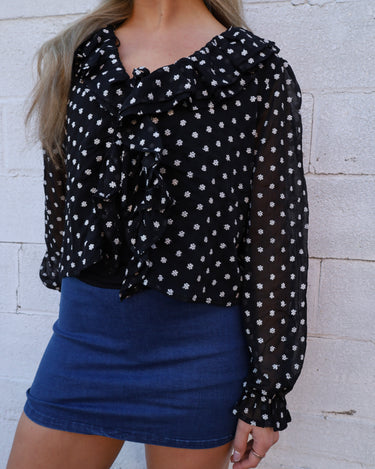 Ruffle Sheer Sleeve Blouse