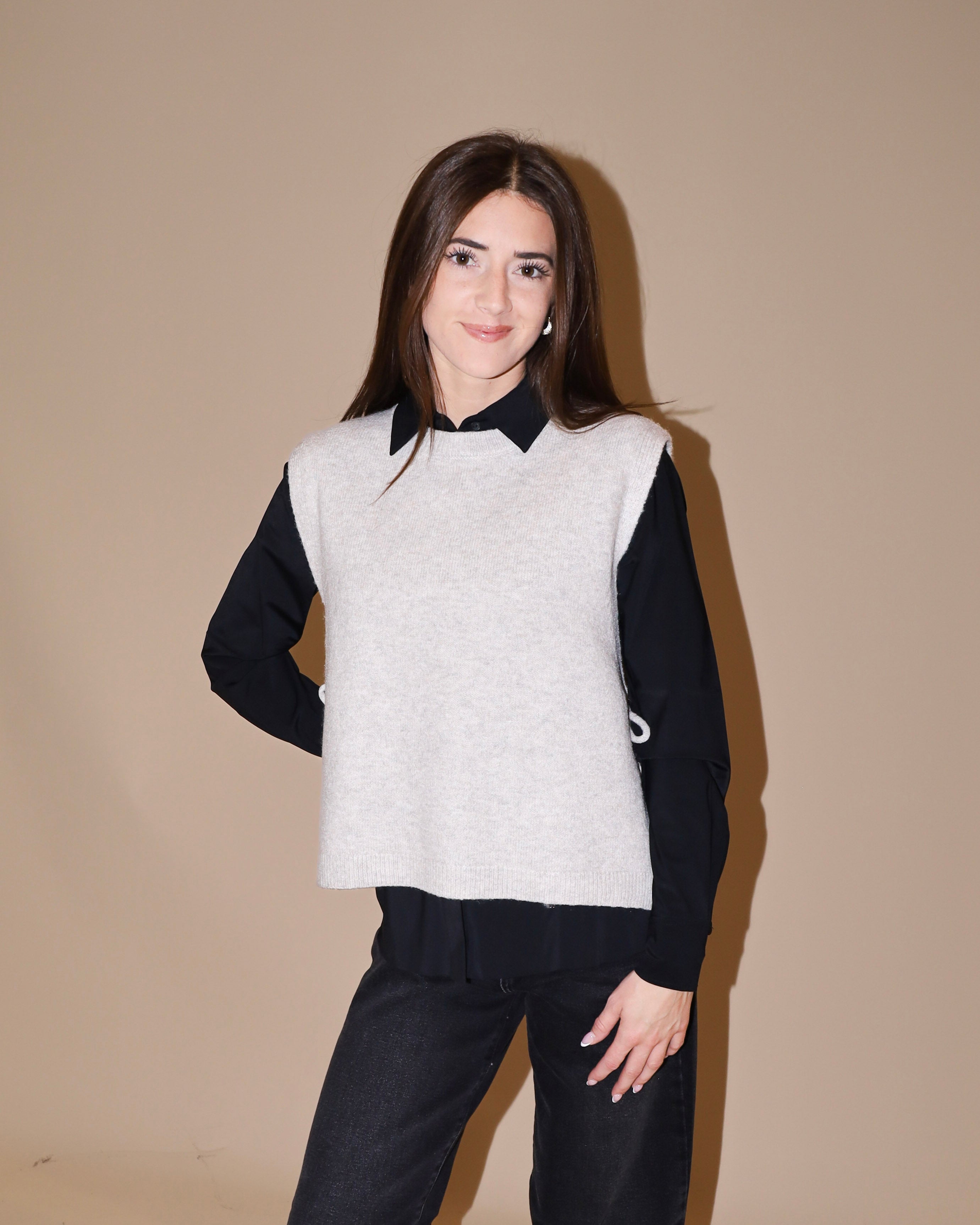Effortless layering meets playful style with this bestselling sleeveless sweater. The adjustable side tie detail cinches your silhouette for a flattering, customizable fit that works with everything in your closet. Perfect for throwing over your favorite tee or wearing solo, this versatile piece transitions seamlessly from season to season. A wardrobe essential that customers can't get enough of.